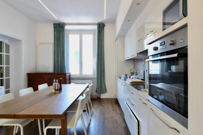 L'Appartamento, completamente arredato e oggetto di accurata ristrutturazione, offre ampi spazi e funzionalità moderna. La proprietà si compone di un ampio living con cucina a vista in stile mediterraneo, sei camere da letto luminose e arredate, doppi servizi con antibagno e una cantina di pertinenza. Gli ambienti, ampi e versatili, si prestano anche a differenti utilizzi (studio, area relax, spazio operativo). I pavimenti in pregiato parquet e gli infissi in PVC con doppi vetri fonoassorbenti assicurano eleganza e comfort, mentre gli impianti di ultima generazione - riscaldamento con caldaia BOSCH e raffrescamento indipendente INNOVA 2.0 in ogni stanza - garantiscono efficienza e benessere. Completano la dotazione TV 60" 4K, impianto audio surround, lavastoviglie, lavatrice, asciugatrice e connessione Wi-Fi in fibra ottica.