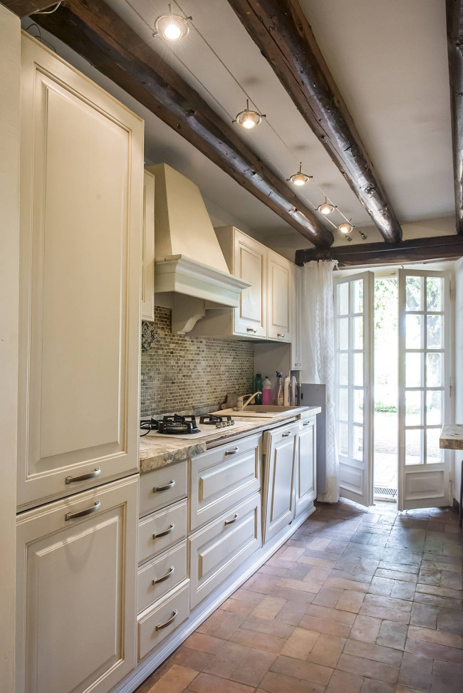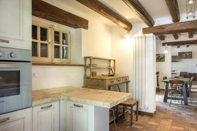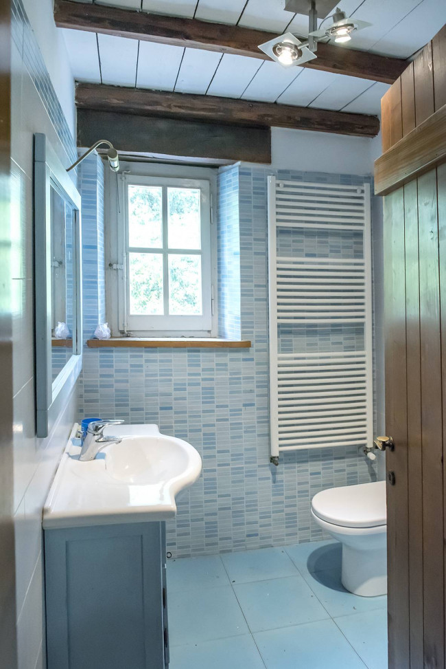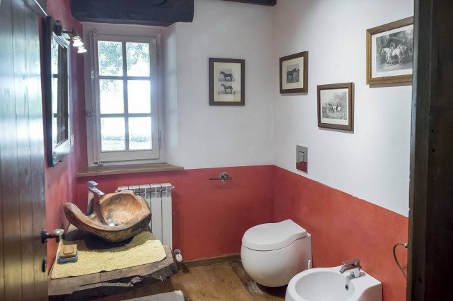 il piano superiore dispone invece di due camere matrimoniali, due camere singole e due bagni. Gli interni sono in ottime condizioni; la ristrutturazione ha rispettato lo stile country che contraddidtingue l'intera proprietà donando fascino e comfort a tutti gli ambienti.