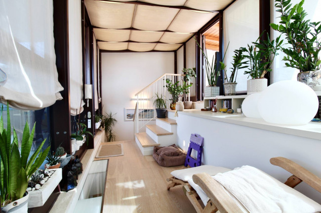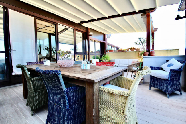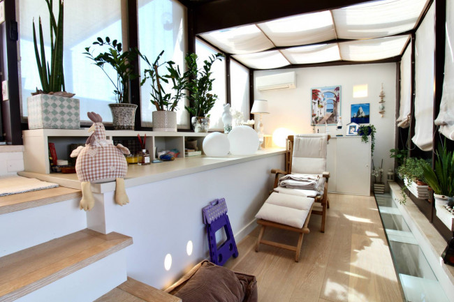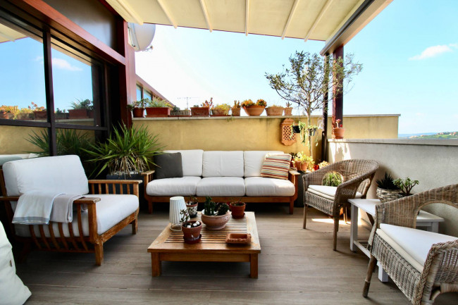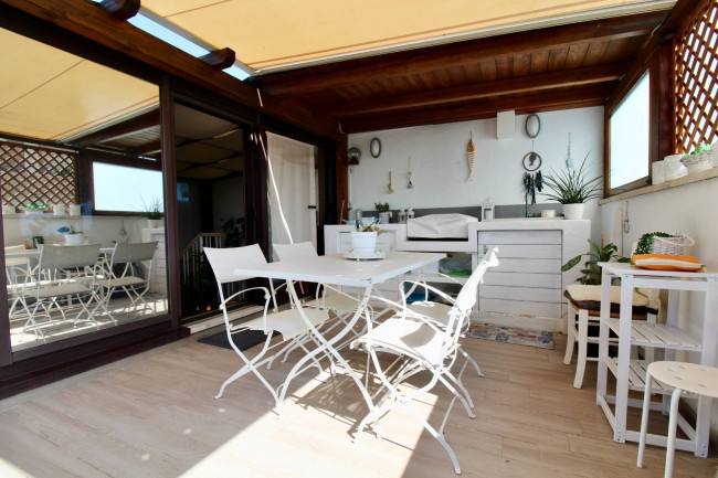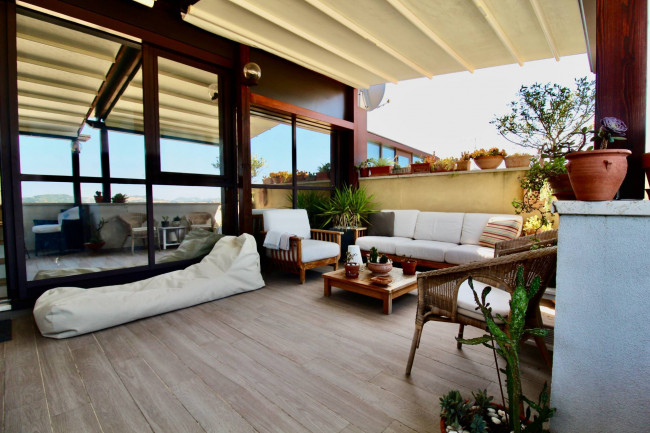 Al piano superiore si trova la zona notte con la camera matrimoniale, due camerette e due bagni; l'ultimo piano ospita invece le due terrazze con vista mare, sapientemente attrezzate per trascorrere momenti di piacere nella bella stagione e non solo.