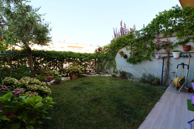 L'ingresso principale si apre in una corte esclusiva immersa in un vero e proprio giardino mediterraneo collegato direttamente con la cucina; la sala si presenta molto spaziosa ed accogliente con un accesso al giardino antistante.