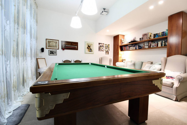 Il piano seminterrato ospita attualmente una zona relax con tavolo da biliardo, bagno e lavanderia e rappresenta uno spazio da gestire a seconda delle proprie esigenze ed inclinazioni.