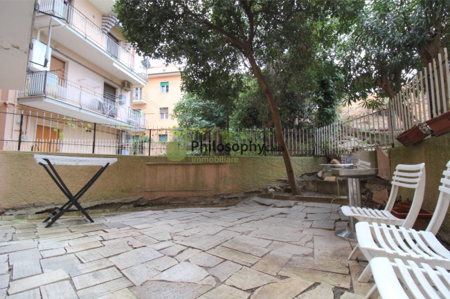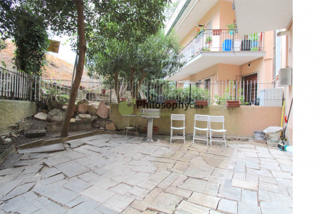L'immobile, molto luminoso, si compone di sala con balcone vista mare, una cucina abitabile con accesso al giardino spazioso; nella zona notte si trovano una camera matrimoniale con uscita sul balcone vista mare, una seconda camera con uscita sul giardino e un bagno recentemente ristrutturato con box doccia.