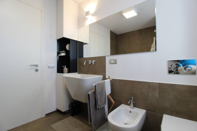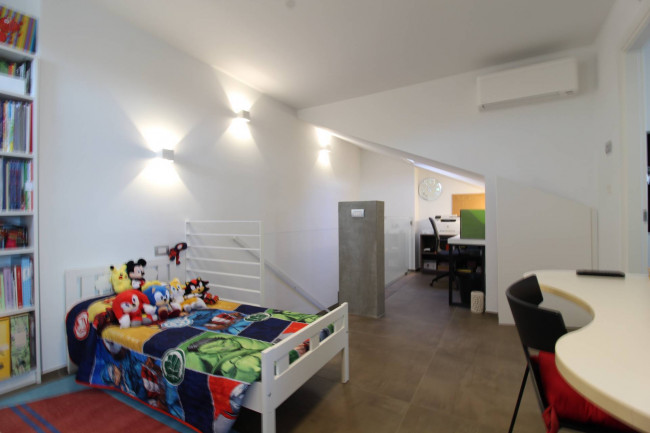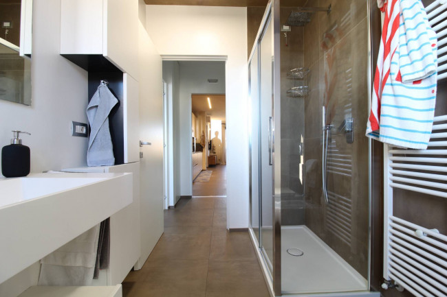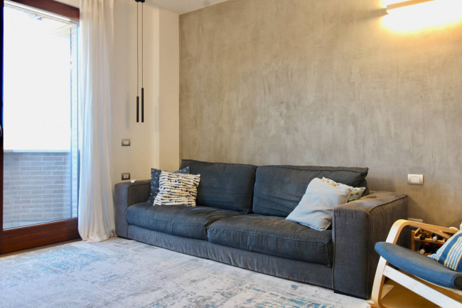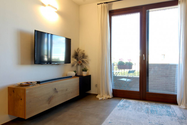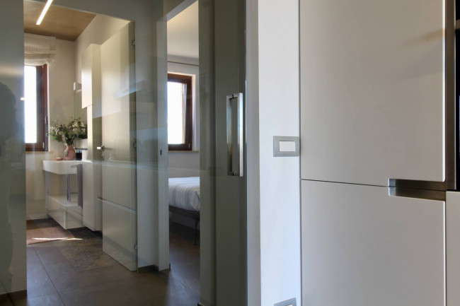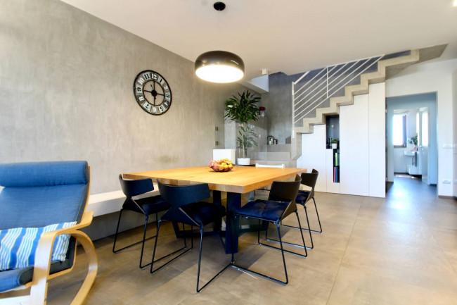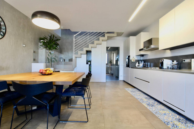 L'Appartamento si sviluppa su 115 mq e si trova al primo piano. L'ingresso apre su un ampio salone con cucina open space, impreziosito da pavimentazione di alta gamma, arredamento moderno e illuminotecnica di pregio. Dalla zona giorno si accede a un balcone. La zona notte comprende una camera matrimoniale con cabina armadio integrata, una seconda camera con balcone e un bagno elegante con box doccia. Una moderna scalinata conduce al piano mansardato, uno spazio versatile e completamente sfruttabile come studio, area relax o stanza per gli ospiti, completato da balcone verandato e ulteriore bagno con vasca. Completano la proprietà un garage di 20 mq e un posto auto scoperto assegnato di fronte all'edificio. L'immobile, in classe energetica B, garantisce comfort, efficienza e bassi consumi. Una soluzione pronta da vivere, curata in ogni dettaglio e situata in una delle zone più ricercate e comode di Montecosaro Scalo, a pochi minuti da Civitanova Marche.