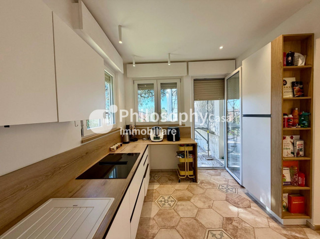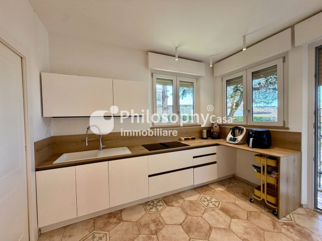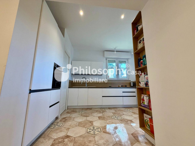 Una proprietà che esprime eleganza contemporanea, comfort assoluto e una posizione semplicemente impareggiabile, in una delle località più affascinanti della costa adriatica. L'ingresso introduce a un'ampia zona living, luminosa e raffinata, dove gli spazi si fondono in un ambiente armonioso con accesso diretto al giardino privato, perfetto per momenti di relax riservati o per accogliere ospiti in un'atmosfera di assoluta privacy. La cucina, moderna e completamente accessoriata, è anch'essa collegata al giardino ed è impreziosita da una funzionale zona lavanderia integrata con discrezione. La zona notte offre tre camere, di cui due matrimoniali di generose dimensioni e una terza stanza versatile, ideale come studio o camera ospiti. I due bagni, entrambi ampi, sono realizzati con finiture ricercate e dotati di eleganti docce walk-in .