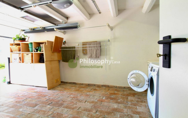 Sempre al piano terra è presente un garage di circa 20 mq con doppio uso lavanderia, comodità rara nel centro storico, direttamente collegato all'abitazione e con la possibilità di essere reinterpretato, anche a livello catastale, come seconda camera o spazio indipendente.